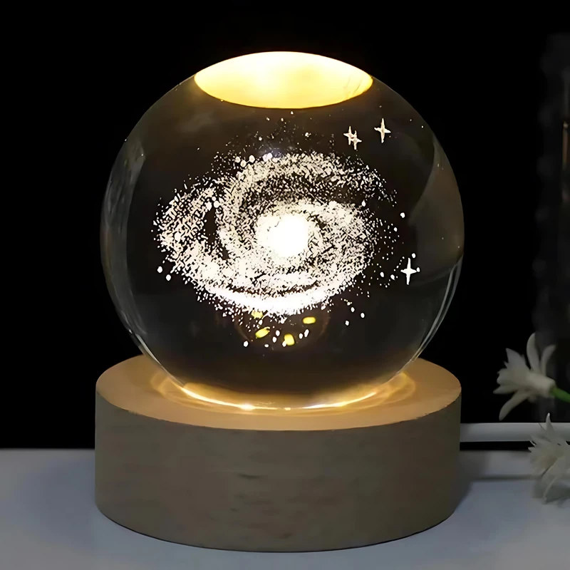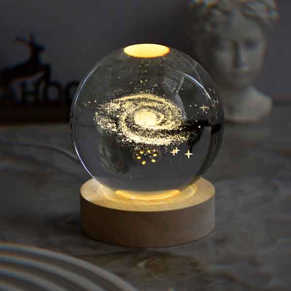 گوي كريستال سه بعدي ، کابل USB جهت اتصال به برق اتصال به شارژر ، لپتاپ ،پاور بانک و ….                               چراغ LED ، پايه چوبي                                            سايز ٨ سانتي  ، ابعاد جعبه : ٨*٨*١٠ سانتي متر   وزن : ٧٠٠ گرم